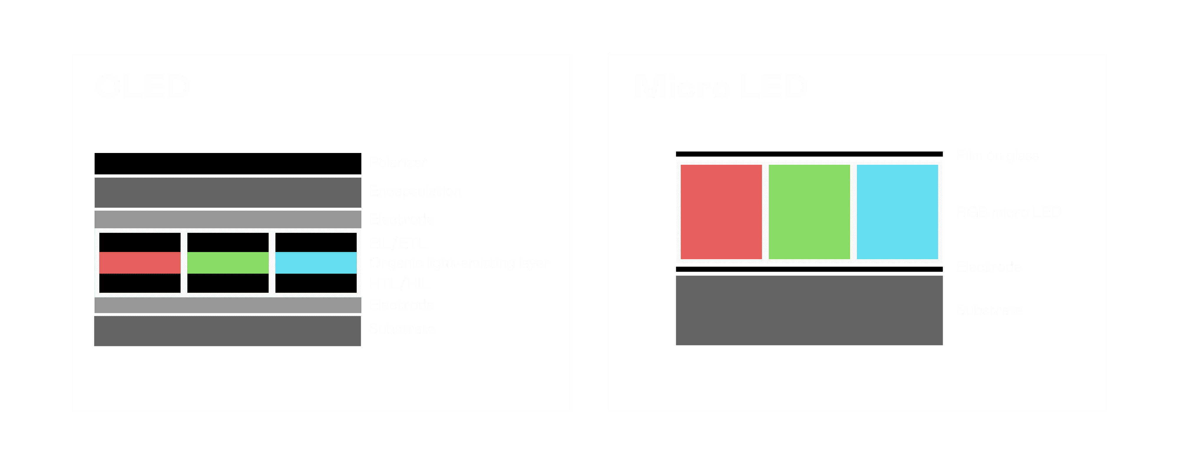 以 LED 做为显示画素,,,可让 LED 的发光效率发挥到极致,,,从而让显示器具备优异的亮度表现,,,,不论是在户外或室内,,均具备出众的显示效果。。。。同时,,与使用有机材料的 OLED 相比,,,,LED 具备更稳定、、寿命更长的特性,,不仅不会有画面烙印问题,,,而且更不容易出现故障、、、坏点。。。