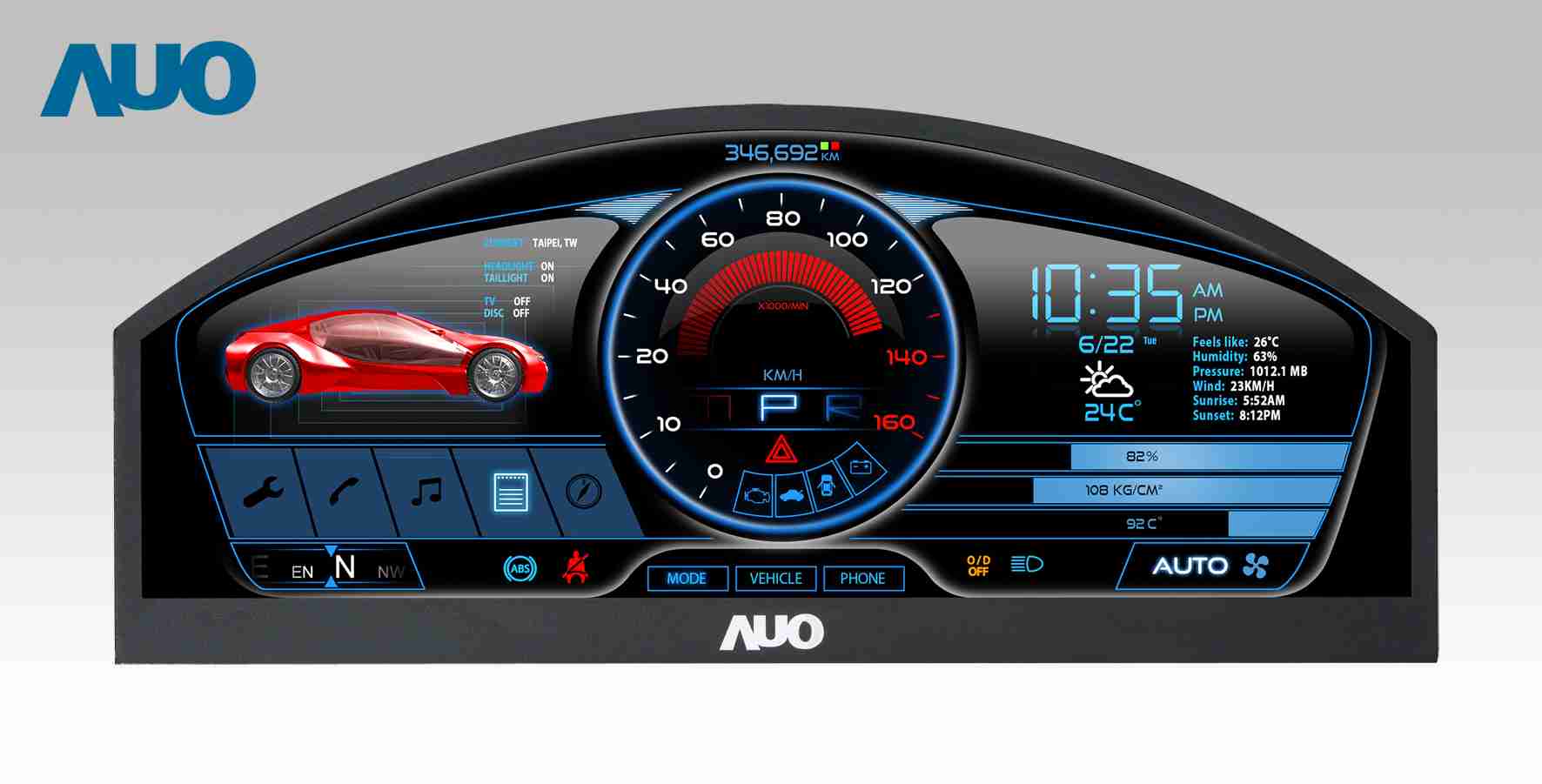 Wepay 12.3吋超高解析异型切割车用面板,,,拥有流线外观及精细画质